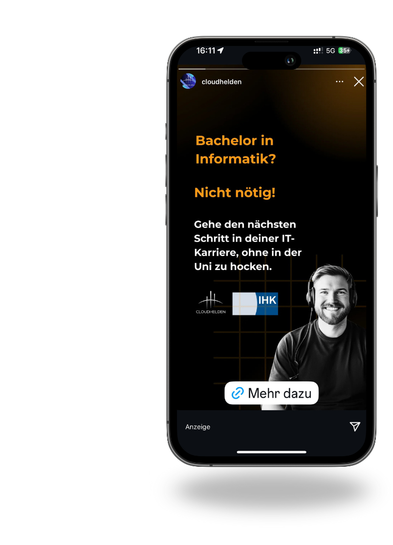 Wie wir das erreichen? Mit einem sauberen Conversion-Setup, laufenden Creative Tests und professionellem Media-Buying.